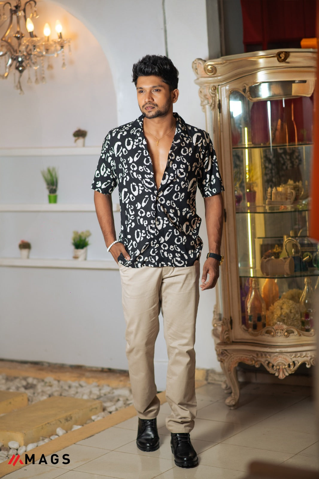 The Noir Ink Viscose Shirt is a sleek and sophisticated piece that blends modern style with effortless comfort. Made from luxurious viscose fabric, this black shirt features a striking white print, creating a sharp contrast that's both bold and refined. Perfect for both casual and semi-formal occasions, it exudes a timeless yet contemporary aesthetic.